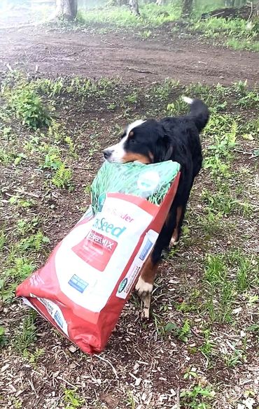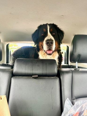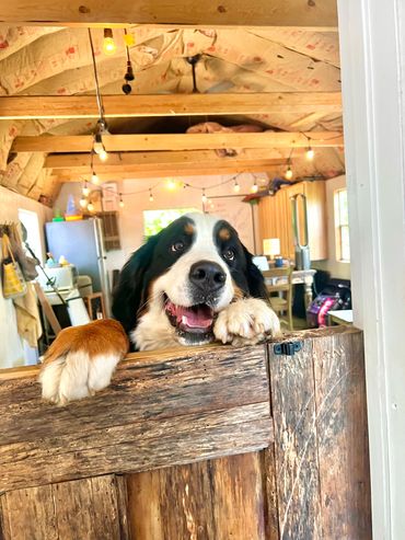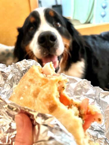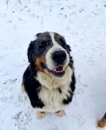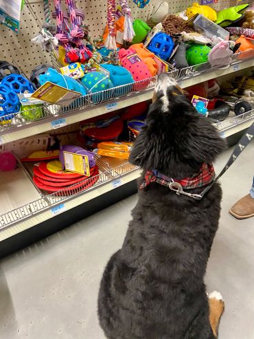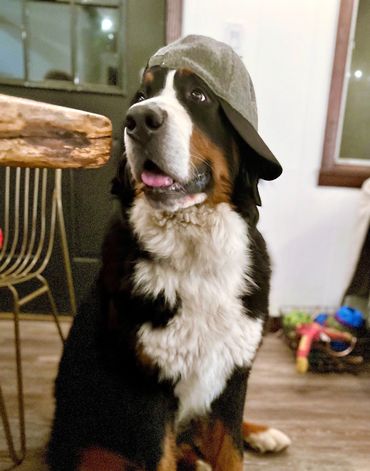 Bernese Mountain Dog, Sugar, with her carrot toy.